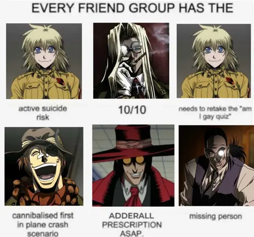 arrow-up141arrow-down1imageFriend Group [Hellsing]lemmy.blahaj.zonetgirlschierke@lemmy.blahaj.zoneEnglish · 9 days agomessage-square0linkfedilink
