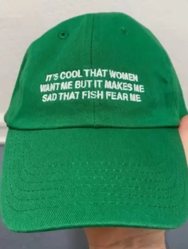 I believe it’s a hat making fun of this popular hat (wtf???):