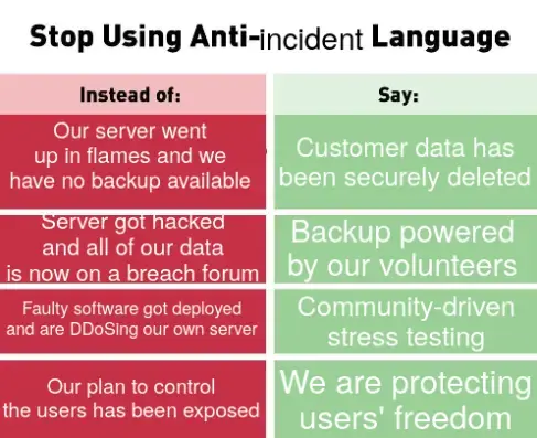 “we got a ransomware infection” vs. “Our data encryption got an upgrade”