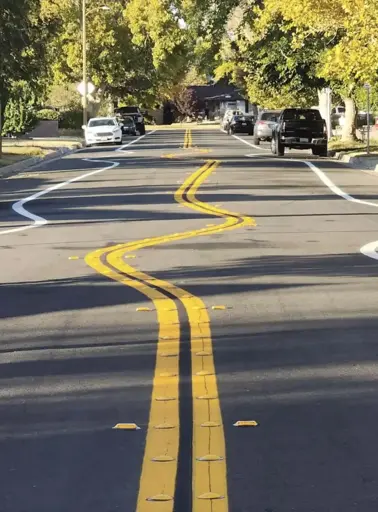 Traffic “calmers”, safer than speed bumps, and anyone that ignores them get tickets.