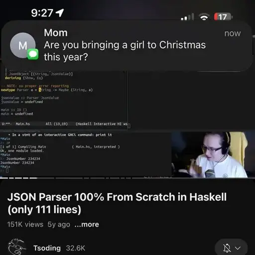 minus-squareLog in | Sign up@lemmy.worldlinkfedilinkarrow-up1·1 month agoIt’s a parser for json. Import Aeson and derive one for your custom type in a single line!