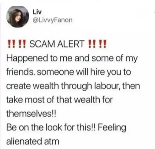 minus-squareElectricd@lemmybefree.netlinkfedilinkarrow-up2arrow-down2·edit-220 days agoThey take the risks, they have the idea, they have special skills… them getting a significant cut from your work doesn’t seem that bad Obviously there are always exceptions, there is always a too much